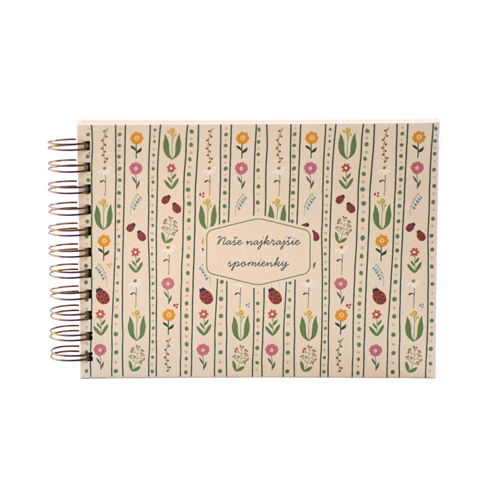 • pevná obálka z lepenky je potiahnutá originálnou autorskou grafikou s nápisom „Naše najkrajšie spomienky“