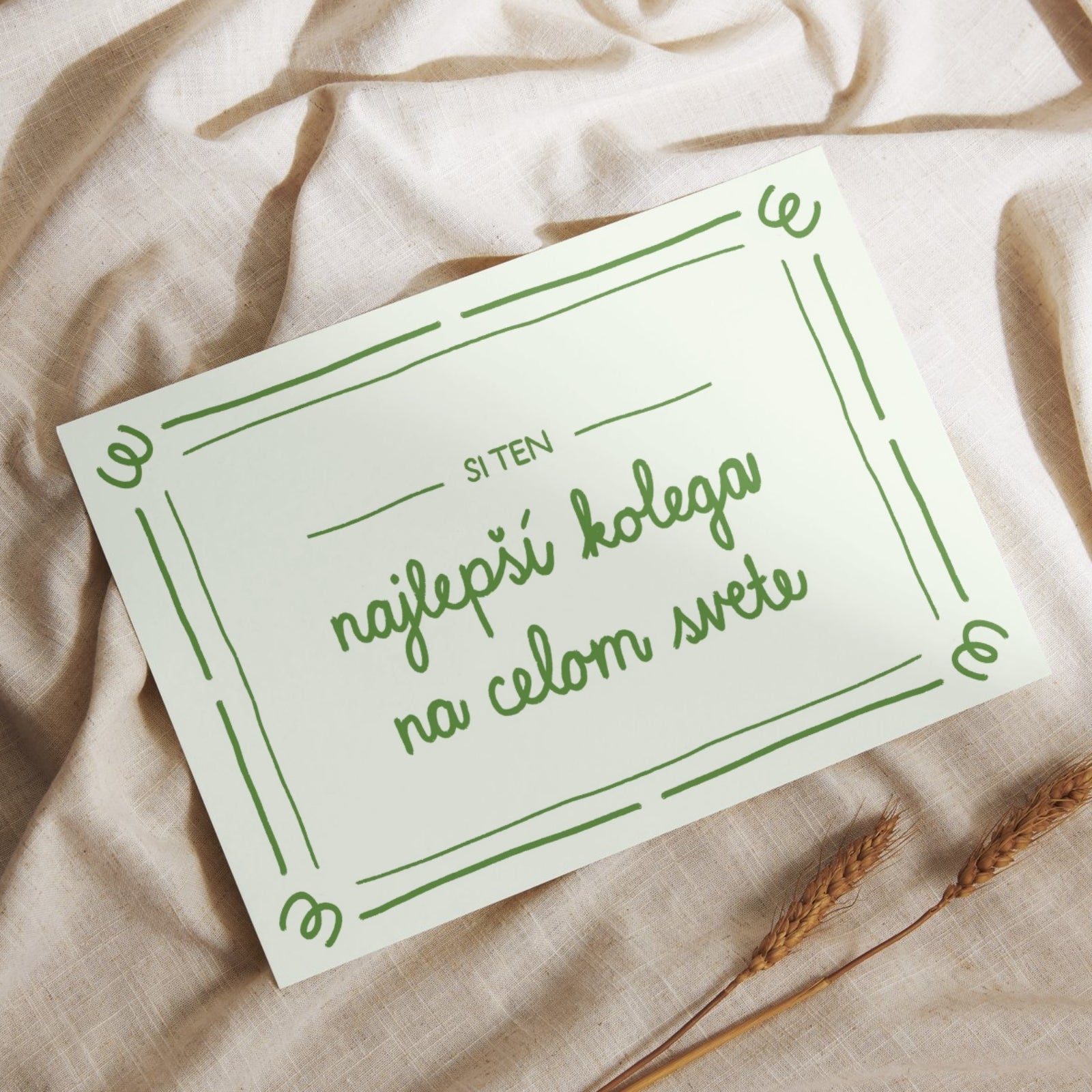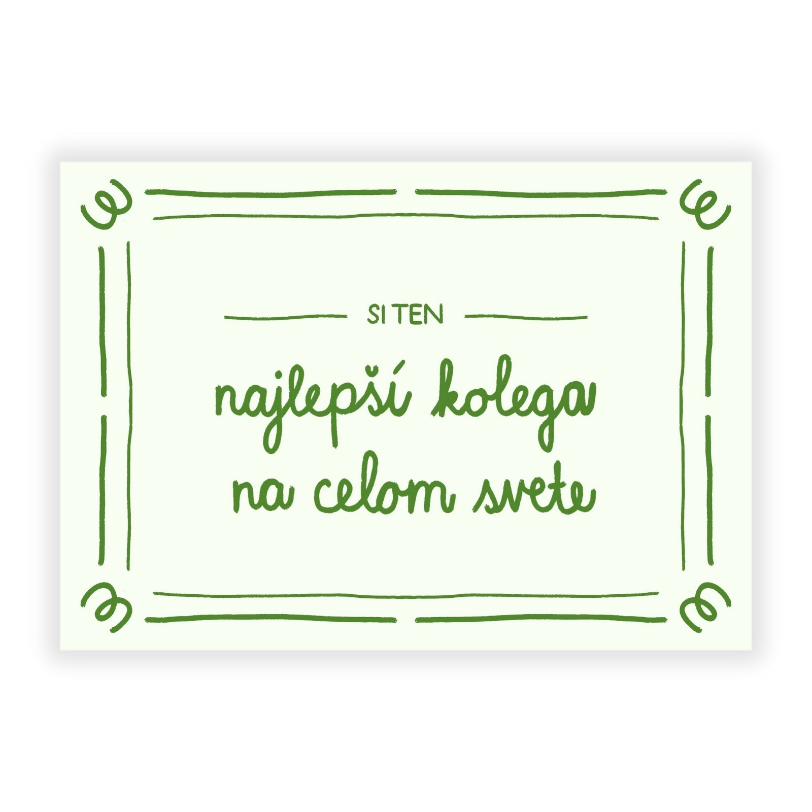 Malé slová, veľká radosť. Pohľadnica s nápisom „Ty si ten najlepší kolega na celom svete“ je milým gestom, ktorým potešíte svojho kolegu a vyjadríte vďaku za jeho prácu, podporu a priateľstvo. Perfektná na narodeniny, meniny, alebo jednoducho ako spontánne poďakovanie.