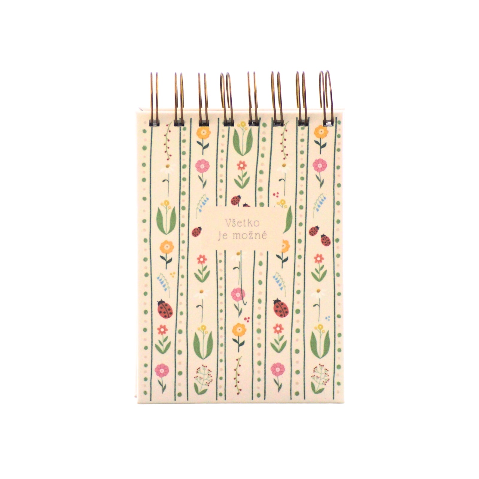 Praktický zápisník vo formáte A6 s kvetinovým vzorom a nápisom „Všetko je možné“ sa zmestí do každej kabelky či batohu, takže ho môžete mať stále pri sebe. Obsahuje 120 strán z kvalitného 100 g/m² papiera a na úvodnej transparentnej strane nájdete citát „preto ver v zázraky“. Dostupný je v čistom aj linajkovanom variante.